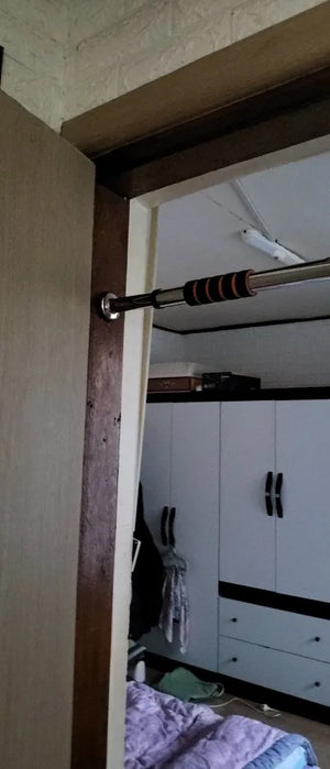 The telescopic design adjusts to most standard doorways. Measure your frame and extend the bar to lock securely. Fit flexibility lets you switch between narrow and wide grips.