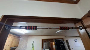 Adjustable non-slip doorway bar for quick strength training, muscle gains, and everyday home workout convenience.